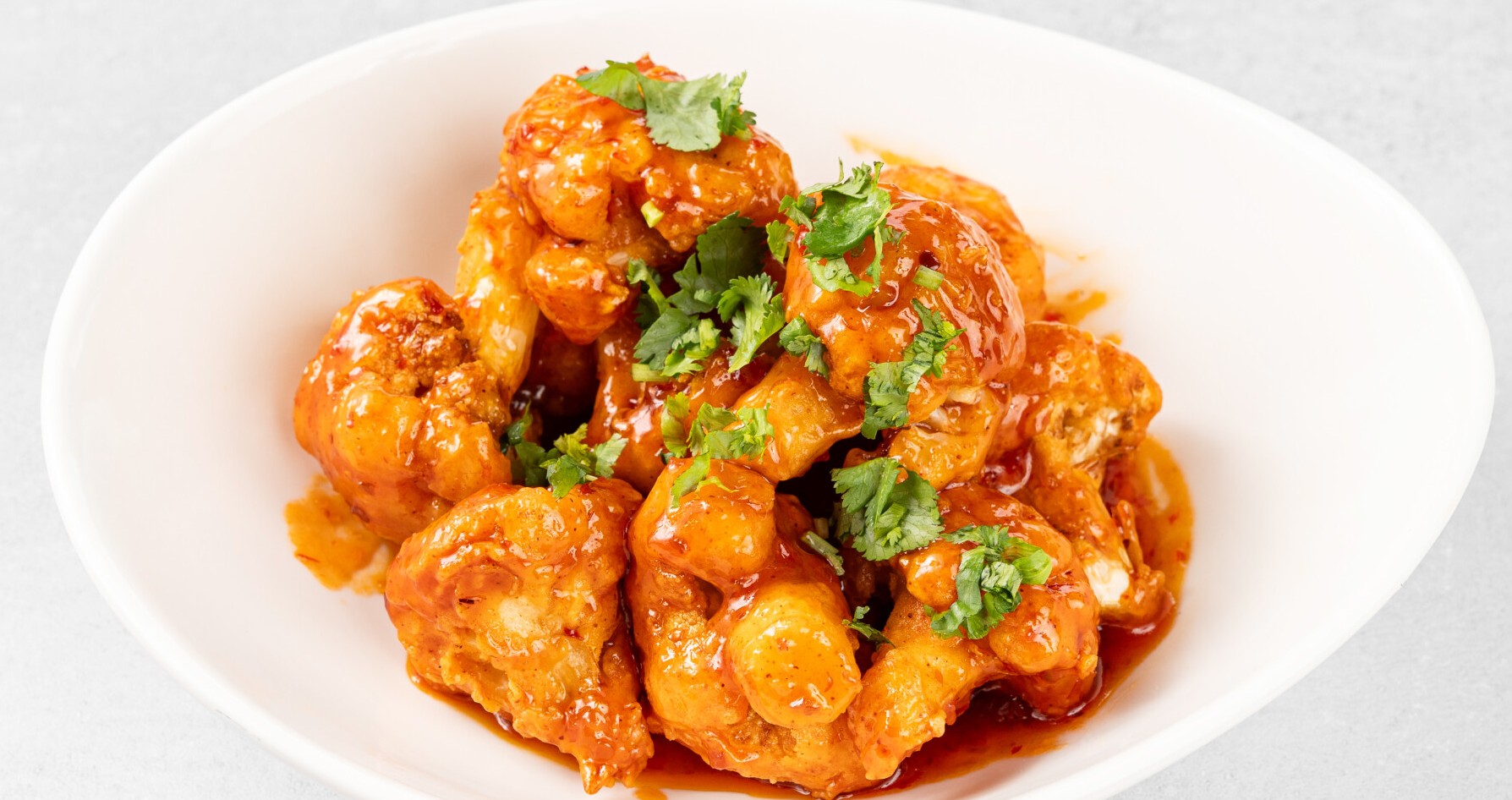 Cauliflower coated with seasoned batter, fried till crispy and stirred in a sweet and spicy sauce..